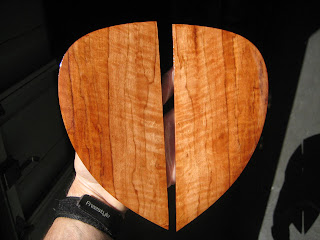 Bacote, flame maple, Peruvian walnut and maple pinlines.